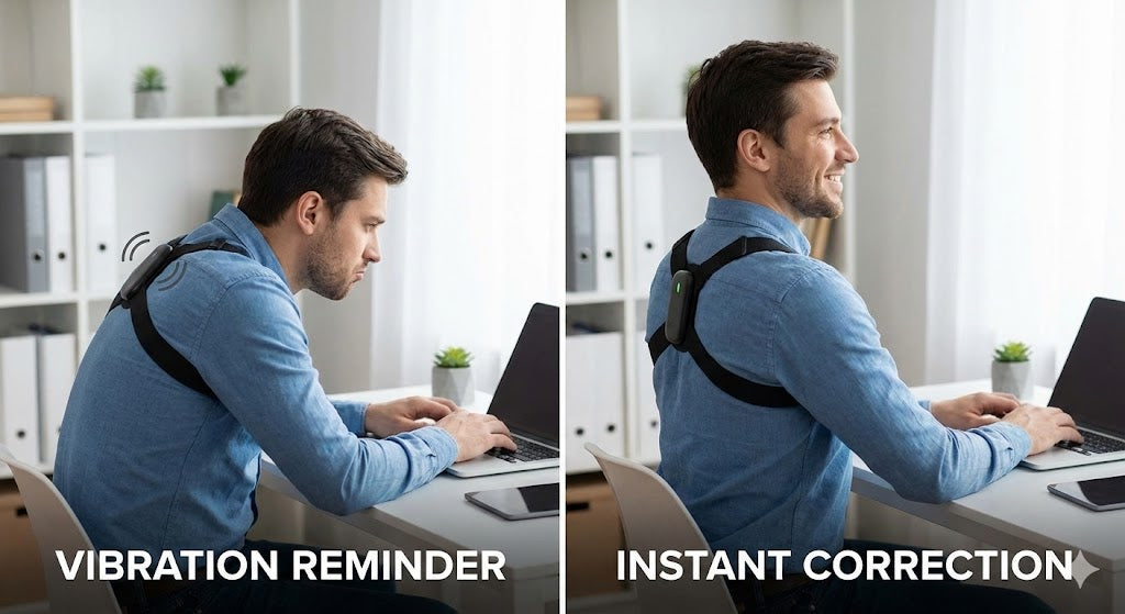 No. It only vibrates when your posture shifts beyond the set range, acting as a gentle reminder.